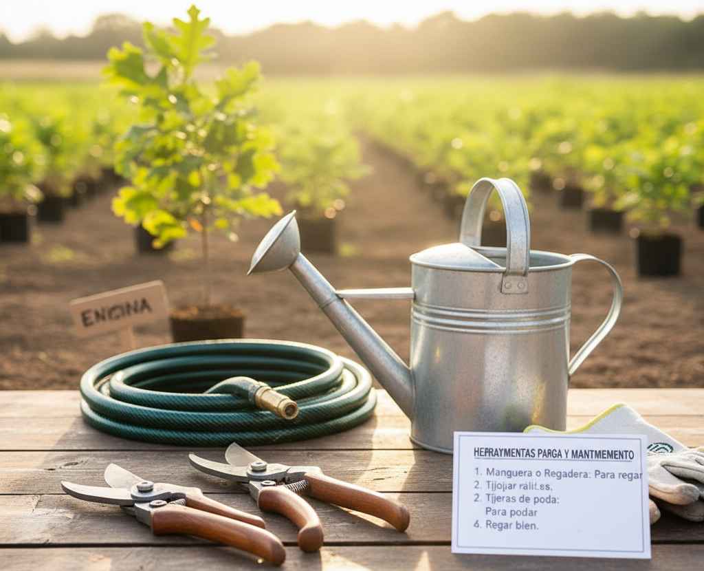 - Manguera o regadera: Para regar el árbol de manera eficiente.