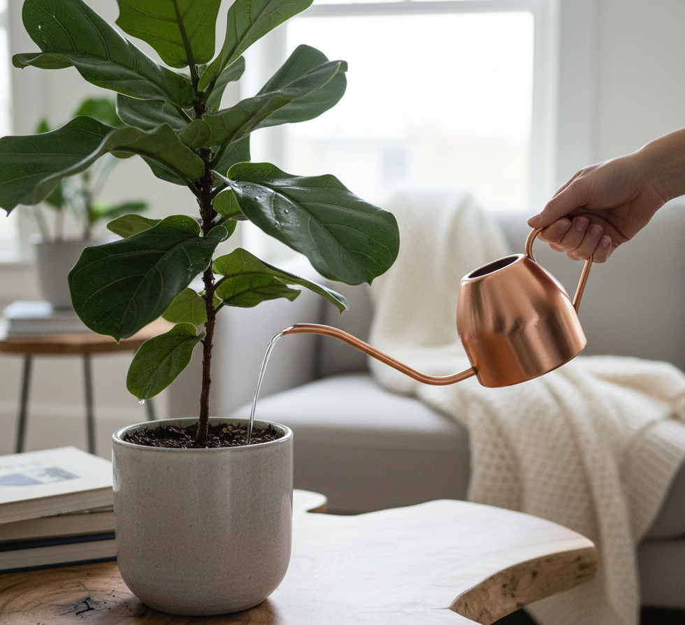 Consejo para invierno: Durante los meses más fríos, mantén tu ficus alejado de radiadores y otras fuentes de calor seco, ya que pueden deshidratar la planta. Si usas calefacción, aumenta la frecuencia de pulverización de las hojas para compensar la sequedad ambiental.