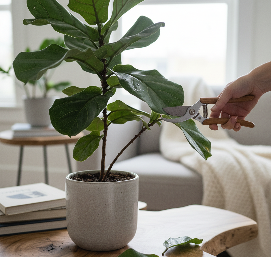 La poda es esencial para controlar el tamaño y la forma de tu ficus, especialmente en espacios interiores. Realiza esta tarea preferentemente en primavera, cuando la planta está en pleno crecimiento.